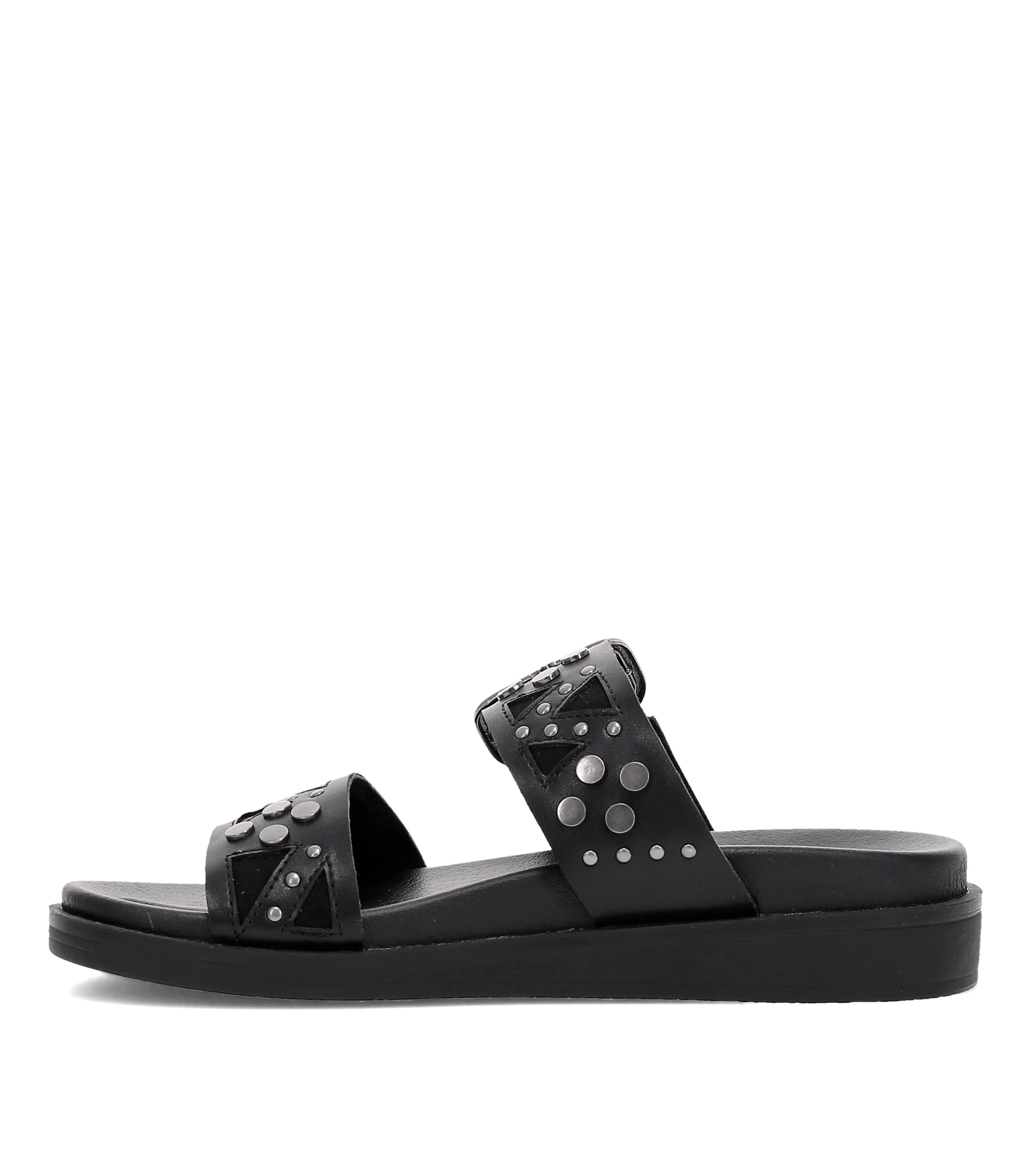 The Castella footbed sandal features double-straps with artistic stud detailing, an oversized buckle and an overlay design.